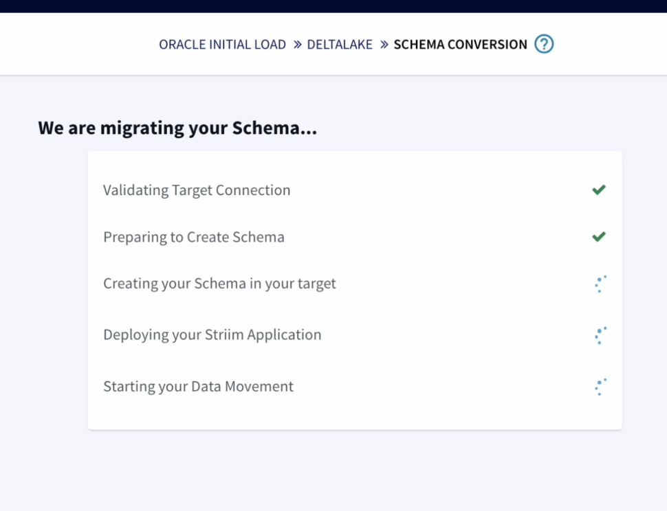Which supports ACID transactions, scalable metadata handling, and unifies streaming and batch data processing. - Striim has the capability to migrate schemas too as part of the wizard which makes it very seamless and easy.