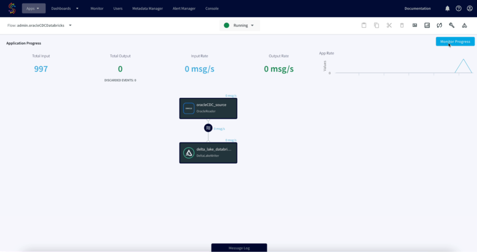 - We can refresh Databricks to view the CDC data, Striim allows us to view the detailed metrics of a pipeline in real-time.