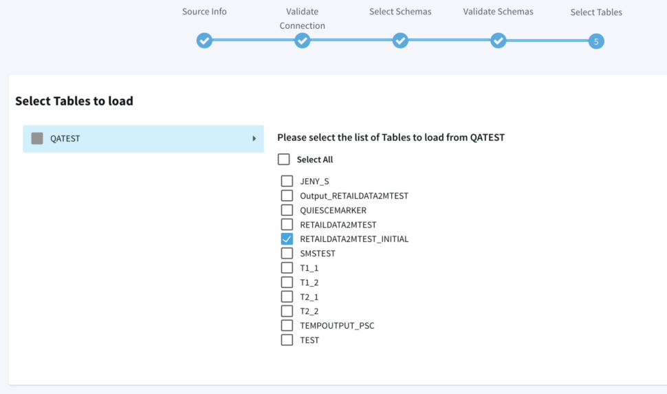 - Next we have to option to choose the schemas and tables that we specifically want to move, providing us with more flexibility instead of replicating the entire database or schema.