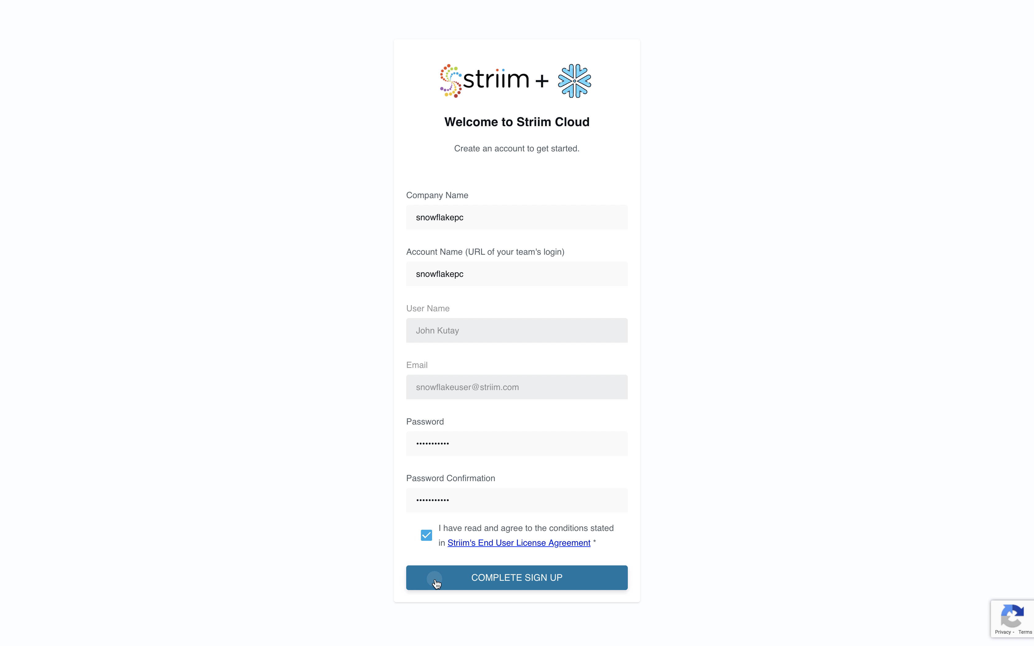 - Launch Striim’s cloud service directly from the Snowflake UI